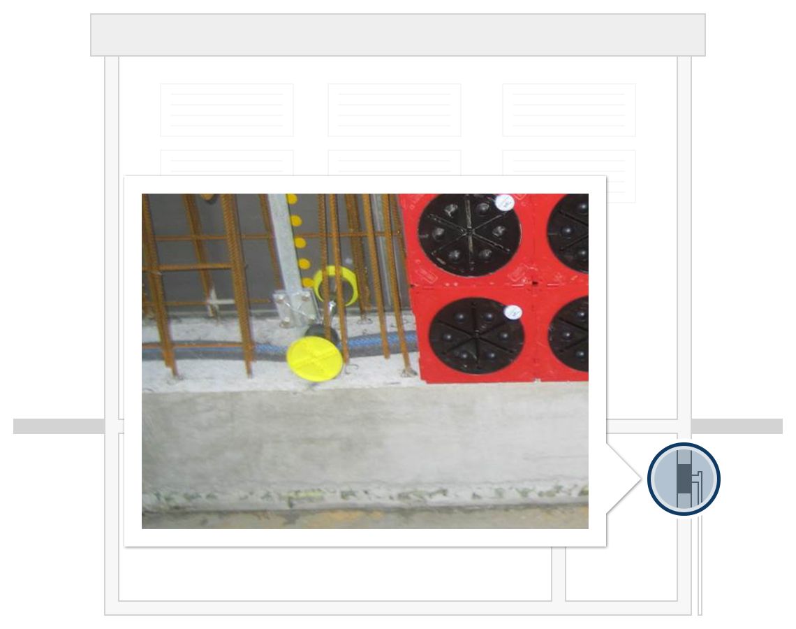 Specifically for transformer-/substations. Installed during the formwork process. Earthing connections to the building can be made with the thread on both sides.