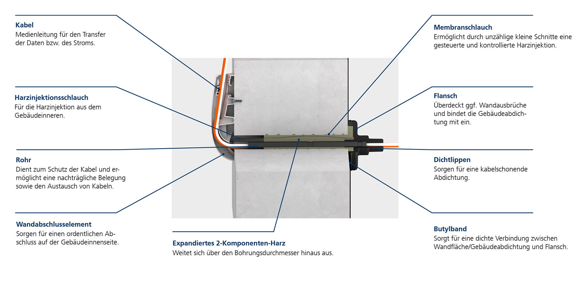 Oftmals sind dafür Bohrungen zur Durchdringung der Gebäudehülle nötig – und damit eine potentielle Schwachstelle bei der Abdichtung des Gebäudes. Damit das Gebäude weiterhin zuverlässig gegen Wasser, Gas und Ungeziefer geschützt bleibt, stellt sich die Frage: Wie dichtet man Leitung und Öffnung sicher ab?